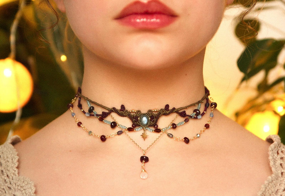 🌿 Ras de cou en macramé réalisé à la main avec amour et attention. Ce ras de cou est fait sur commande avec une pierre naturelle, il peut donc présenter quelques subtiles différences avec le produit présenté en photos.